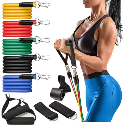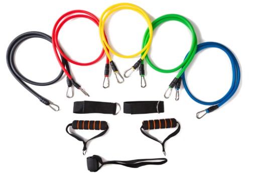 Набір з 5 резистентних ремінців, виготовлених з високоякісної гуми, забезпечує не тільки довгий термін служби, але й безпеку під час тренувань.