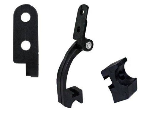 Чорна пластикова конструкція має один монтажний отвір і два монтажних отвори.