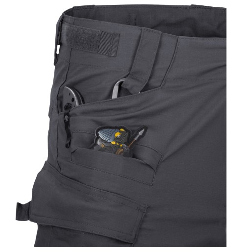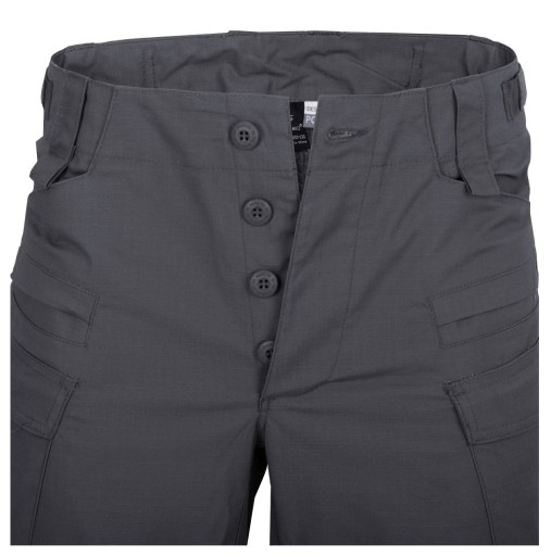 Профільовані підсилення на колінах запобігають видавлюванню матеріалу і можуть використовуватися для носіння внутрішніх захисних вставок. Штани застібаються на кнопки з логотипом Helikon-Tex®, а талія регулюється за допомогою липучок.