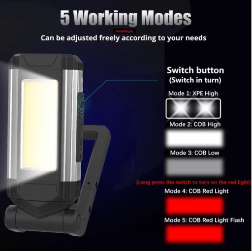 СВІТЛІК ЛАМПА WORKSHOP ПЕРЕЗАРЯЖАНА USB COB LED 5in1