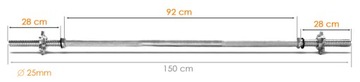 ГРИФ ПРЯМОЙ 150СМ С РЕЗЬБОЙ ШТАНГИ 25ММ