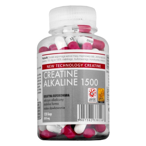 CREATINE ALKALINE - це добавка з креатином останнього покоління, виготовлена в суворій відповідності до опису патенту США 6,399,661. Препарат полегшує транспортування сполук фосфору, які використовуються для синтезу білка. Креатин підтримує належний рівень АТФ (аденозинтрифосфату) в м'язах, що дозволяє м'язовим волокнам працювати на найвищому рівні під час інтенсивних тренувань. Креатин бере участь у нарощуванні м’язової маси тіла спортсмена та збільшує м’язову силу.