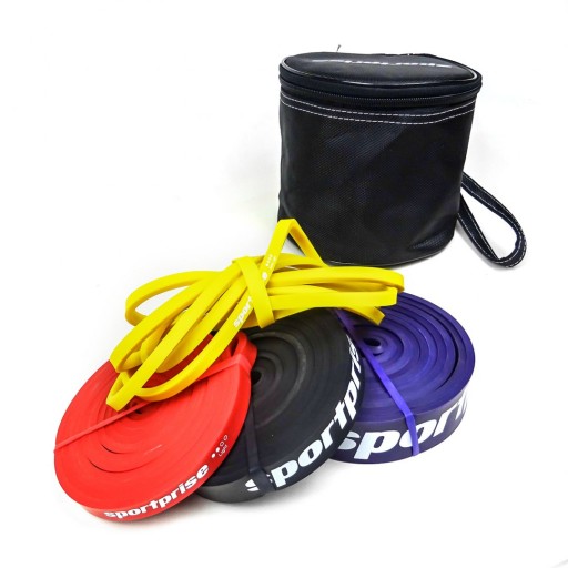 У набір Sportprise входить 4 гуми різної товщини і різної міцності, які зберігаються в зручному футлярі. Чохол ви отримуєте від нас безкоштовно! Завдяки цьому ви зможете зберігати своє спорядження в одному місці та брати його з собою куди завгодно на тренування.