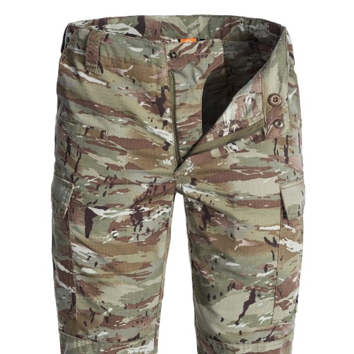 Штани BDU (Battle Dress Uniform) з 7 кишенями. Виготовлений з матеріалу типу RipStop, що складається з 65% поліестеру та 35% бавовни, який характеризується високою стійкістю до стирання та розривів. Крім того, матеріал просякнутий шаром, що підвищує стійкість до бруду.