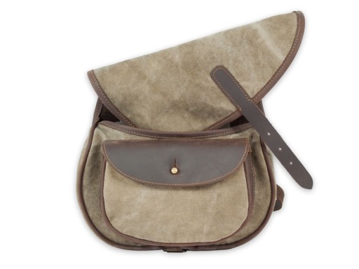 Універсальна мисливська сумка з якісного італійського полотна. Задня частина сумки, усі краї та ремінь для перенесення виготовлені з коричневої шкіри.