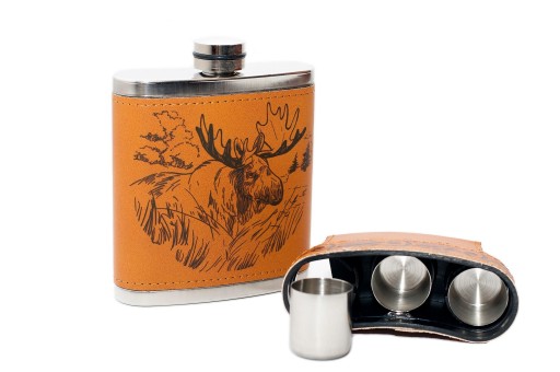 КОЛБА З ТРЬМА СТАКАНАМИ ШКІРЯНА ОБІЛЮТКА