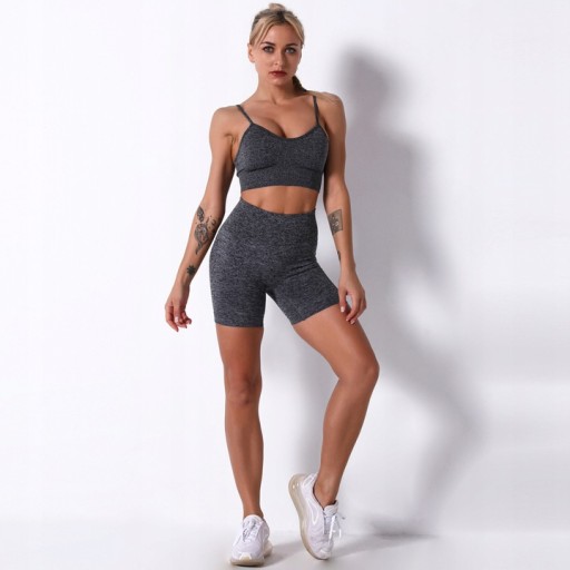 Гарний, гнучкий набір для фітнесу, йоги або бігу. Тканина дихаюча, швидко сохне і дуже еластична. Ідеально прилягає до тіла. Шорти з високою талією підвищують комфорт використання.Комплект оптично формує фігуру. Ідеально підходить для тренувань вдома, в тренажерному залі або на природі.