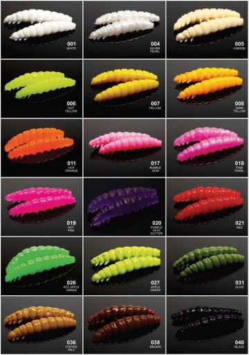Larva, безумовно, буде конкурентоспроможним вбивцею також на змаганнях Trout Area під час лову райдужної форелі та іншої риби сімейства лососевих. Лялечка комах є основною їжею багатьох видів риб. Унікальні властивості матеріалу роблять жирну м'яку лялечку непереборною навіть для найобережнішої форелі. Ретельно продумана форма приманки дозволяє їй реагувати навіть на найменший рух кінчика. Це дає широкий спектр можливостей, від природної презентації до т.зв перехід до різних видів анімаційних технік.
