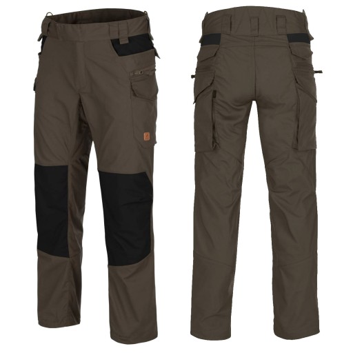Штани Helikon Pilgrim мають вісім дуже функціональних кишень. Великі кишені на ґудзиках на стегнах обшиті сіткою для збільшення циркуляції повітря, коли кишені відкриті. Завдяки цьому вони надзвичайно міцні та легкі для своєї передової конструкції. На стегнах чотири кишені - дві класичні спереду і дві збоку з клапаном. Всі чотири мають посилені краї, адаптовані до частого використання.Кишені на стегнах застібаються на перевернуту блискавку і приховують внутрішню кишеню для телефону або пилки.