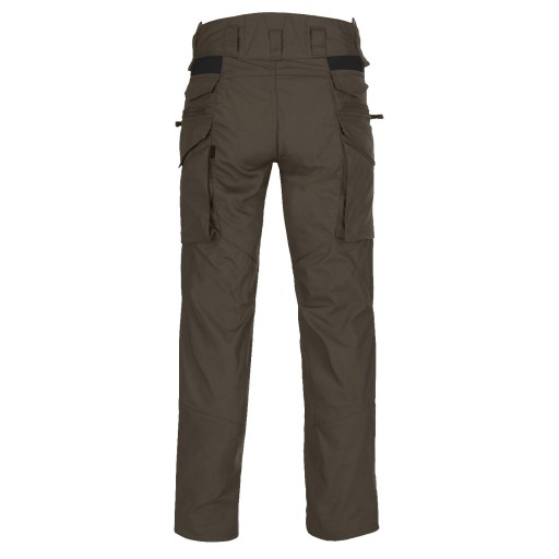 Для кращого захисту від зносу матеріалу штани мають підсилення на сидінні та колінах у критичних місцях. Крім того, на коліна можна встановити неопренові вставки (Low Profile Protective Pads). Штани мають чотири спеціальні стрічки для кріплення предметів, які ми не хочемо втратити (перочинний ніж, мультитул, кремінь, маленький ліхтарик). Пояс застібається на зручну липучку, що в деякій мірі дозволяє підлаштувати його під розміри користувача. Також ніжки мають регулювання у вигляді петель з ударних шнурів, оснащених стопорами. Підтяжки кріпляться до штанів завдяки двом петлям, вшитим на талії штанів.