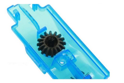 На виході пристрою є гумка, яка видаляє надлишки миючого засобу з ланцюга.