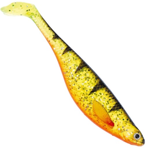 Гума виготовлена з м'якого, міцного матеріалу, який не має тенденції до зміни кольору. Під час падіння працює переважно щитком на хвості, без руху всієї приманки.