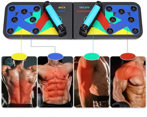 Ця дошка для віджимань 14 в 1 — це інноваційна кольорова тренувальна система віджимань, яка зміцнює та формує всю верхню частину тіла, націлюючись на м’язи грудей, плечей, спини та трицепсів.