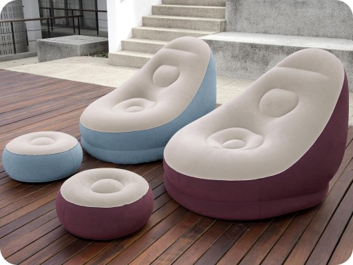 Вся річ виготовлена з міцного ПВХ, а верхня частина покрита приємним на дотик оксамитом. Якщо є потертості, їх можна легко залатати за допомогою ремонтного пластиру, який входить у комплект. Внутрішня рама Coil-Beam і дві повітряні камери забезпечують стійкість крісла. Крісло підходить для використання як в приміщенні, так і на вулиці.