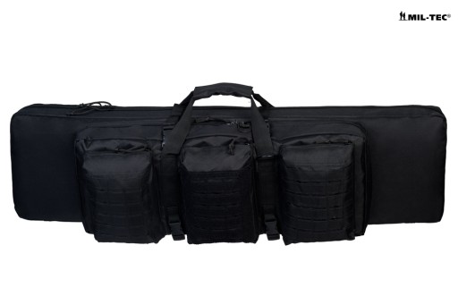 Жорстка сумка для транспортування зброї. Продукт німецького бренду Mil-Tec. Нова модель, яка поєднує перевірені технології та сучасні рішення. Він розроблений на основі досвіду антитерористичних підрозділів міліції та спортивних стрільців. Чохол дозволяє одночасно носити 5 одиниць зброї, дві довгомірні зброї, пістолет-кулемет або карабін зі складаним прикладом (наприклад, АКМС) і два пістолети. Чохол оснащений лямками для перенесення рюкзака, плечовим ременем і ручкою для валізи. Місткі кишені дозволять упакувати магазини, боєприпаси та аксесуари. Модульна система MOLLE/PALS дозволяє прикріпити додаткові кишені. Розкладений чохол можна використовувати як килимок для стрільби. Надійне виготовлення відповідно до військових специфікацій і універсальний дизайн гарантують задоволення вимогливим користувачам.