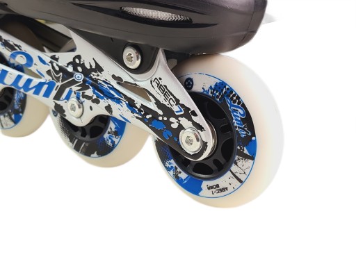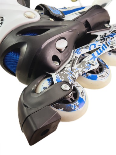 - спеціальна конструкція взуття, що забезпечує хорошу жорсткість гомілковостопного суглоба - високий рівень безпеки - м'який комфортний салон - профільована устілка - комфорт водіння на найвищому рівні - великі колеса 80 мм - 78A - ГУМА - зручна конструкція взуття, яка адаптується до стопа - 3 рівня кріплення (застібка на шнурівці і липучка) - пряжка має систему захисту від випадкового відкривання під час руху - взуття з системою циркуляції повітря - відкручується гальмо