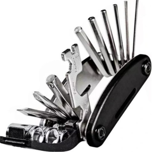 У набір входить 16 найважливіших інструментів для регулювання велосипеда. Все це було укладено в компактну форму кишенькового ножа. У складеному вигляді він поміщається в руці і його легко зберігати, наприклад, у кишені або в сумці для велосипеда. У набір входять шестигранні ключі, викрутки, ріжкові ключі та спеціальний ключ для спиць.