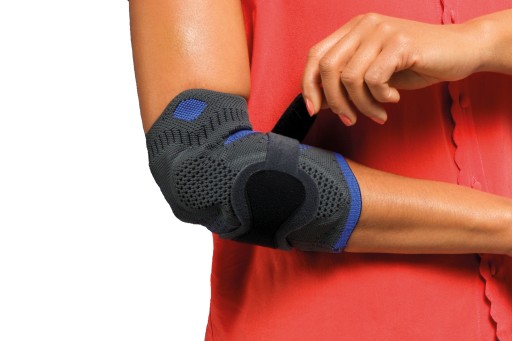 - бандаж підтримує рух ліктя під час вправ, збільшуючи відчуття безпеки та зменшуючи відчуття болю