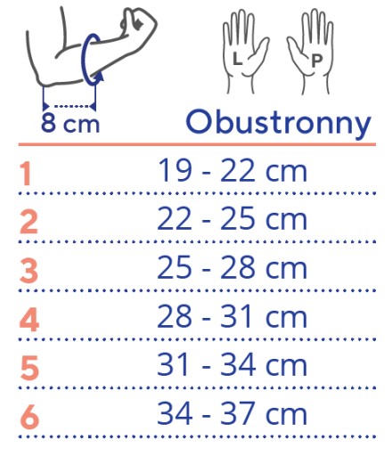 - Щоб вибрати правильний розмір, виміряйте окружність руки приблизно на 8 см нижче ліктя (найширшої частини передпліччя).