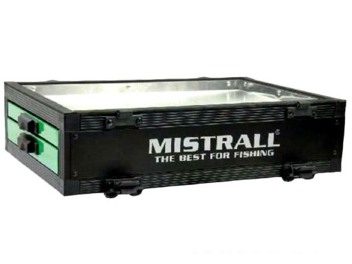 Якісна касета Mistrall для розсувних платформ. Виготовлений з легкого і надміцного дюралюмінію, покритого незмивною чорною фарбою. Внутрішня частина касети складається з двох містких висувних ящиків з ручками, що відкриваються, і магнітними замками, які запобігають їх відкриванню під час транспортування. Касета оснащена петлями з кліпсами для кріплення до іншої касети в будь-якій частині платформи. Завдяки своїй універсальності, касета підходить для платформ інших компаній, таких як Jaxon, Rive, Robinson, Sensas, Trabucco, Maver...