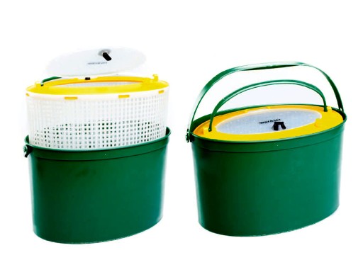 Відро для зберігання худоби. Завдяки кошику ми можемо легко дістати живих тварин з відра. Відро також дозволяє забирати рибу додому після риболовлі, забезпечуючи комфортні умови транспортування. Рекомендується для рибалок з високими вимогами до якості спорядження.