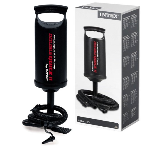 Швидкий і ефективний поршневий насос INTEX Double Quick II для ручного наповнення повітрям басейнів, матраців, понтонів, м'ячів або інших надувних іграшок. Він виготовлений з високоякісних матеріалів і має збільшену висоту в порівнянні з базовою версією до 36 см, що робить його набагато ефективнішим. Спеціальна система роботи поршня робить насос двостороннім, тобто повітря нагнітається як при натисканні, так і при стисканні поршня (рух вгору і вниз). Завдяки такій зручності час накачування надувних об'єктів значно скорочується.