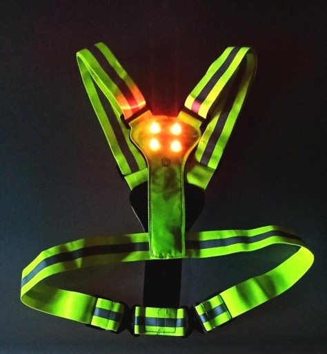 жилет має вбудовані 4 світлодіодні ліхтарі (спереду і ззаду), щоб забезпечити кращу видимість на відкритому повітрі в темний час доби.