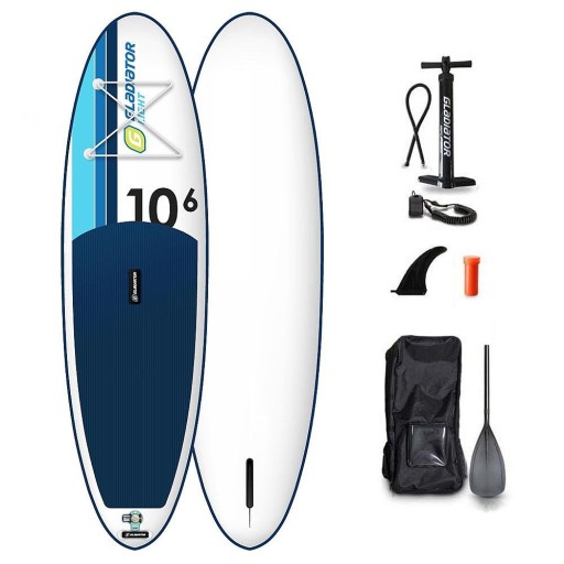 GLADIATOR LT 10.6 - надувний SUP-поплавок з категорії Allround, розроблений спеціально для плавання на спокійній поверхні. Паддлборди базової серії LIGHT від виробника GLADIATOR виготовляються за полегшеною одношаровою технологією зі стрингерними стрингерами, які підвищують жорсткість SUP. Внутрішня структура дошки для паддлборду посилена текстильним стібком щільністю 1000 деньє, а краї поплавця мають подвійний посилений край Xstrong у критичних зонах навантаження. Дошка оснащена центральним плавником, який можна зняти.