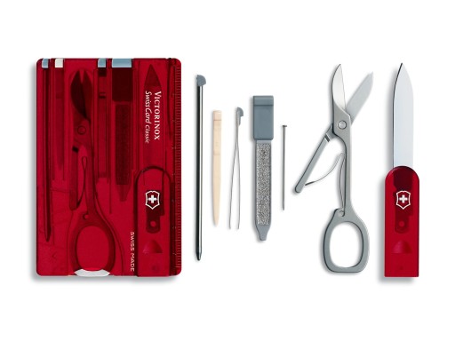 Ви здивуєтеся, скільки інструментів нам вдалося помістити в маленький футляр SwissCard. Ви також будете здивовані тим, як часто ви будете використовувати ці інструменти, заховані в плоскій, непомітній картці. Якщо додати до цього продуманий, відзначений нагородами дизайн і приголомшливу функціональність, ми отримаємо набір, з яким важко розлучитися. Ще однією перевагою Swiss Card є форма і розмір - інструмент легко поміститься в будь-який гаманець.