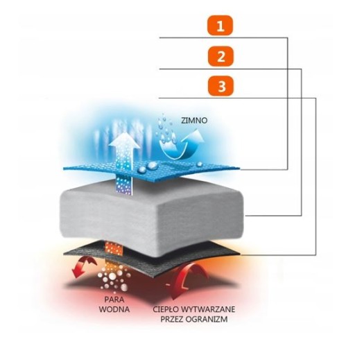 - шар зсередини - поліестер зі структурою POLYCOTTON (не слизький). Приємний для контакту зі шкірою матеріал, непроникний для тепла, що виділяється тілом, пропускає водяну пару.