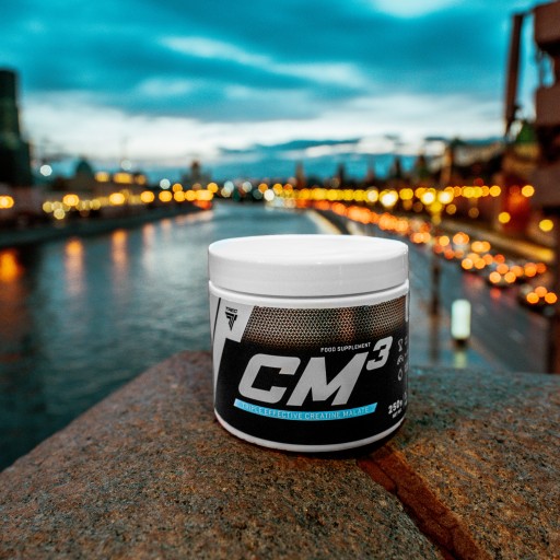 Ресурсів креатину в організмі може бути недостатньо, щоб покрити енергетичні потреби, пов’язані з фізичними вправами, тому, щоб покращити ефект від тренувань, ми вводимо добавки креатину. Величезною проблемою для креатину є його шлях через травну систему. Кисле середовище, яке переважає, серед ін. у шлунку він руйнує цю цінну речовину, не дозволяючи їй досягти місця, де вона повинна виконувати свою роботу, тобто ВАШИХ М’ЯЗІВ. З цієї причини креатин поєднується з різними речовинами, які захищають його від шкідливих факторів, таких як кисла реакція. Однією з найкращих комбінацій для стабілізації креатину є його зв’язування з яблучною кислотою, що призводить до утворення креатину малату. Він доступний у дуже концентрованій дозі у формі ароматизованого порошку, який добре розчиняється у воді, пропонується Trec як продукт під назвою CM3. Креатин CM3 — це форма креатину, яка не має багатьох недоліків основної форми цієї добавки.