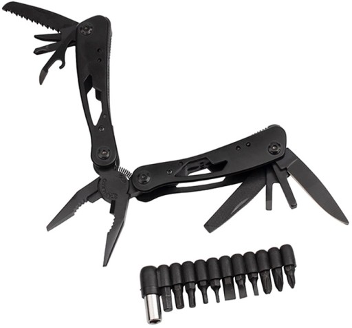 Структура включає, серед іншого: плоскогубці, ніж, відкривачки, викрутки та інші інструменти, які видно на фотографіях - всього 19 різних функцій.