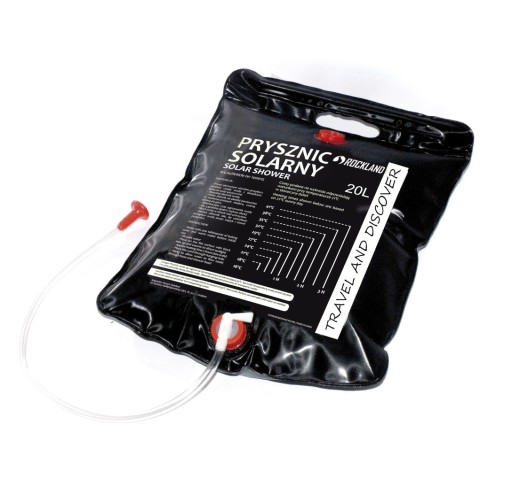 Зручний і простий у використанні туристичний душ. Він має резервуар для води об'ємом 20 літрів - просто наповніть його водою і залиште на сонячному світлі.