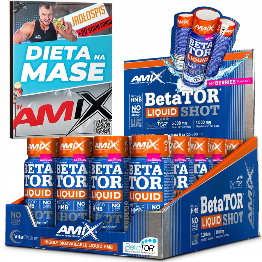 HMB LIQUID SHOT - Najmocniejsze na rynku, patent BetaTor® Amix Nutrition + dieta na budowę suchej masy mięśniowej gratis,