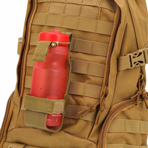 Міцний пляшкотримач з високоякісних матеріалів - ідеальний гаджет для туристичних стежок. Завдяки лямці MOLLE ми можемо легко прикріпити його до рюкзака, сумки або пояса. Спеціальна конструкція дозволяє легко та зручно транспортувати пляшки з водою без жодного дискомфорту.