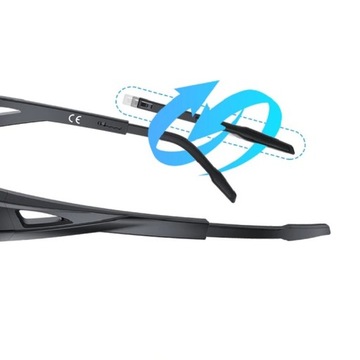 8. Czarne oprawki, ze regulowanymi, wymiennymi zausznikami. W okularach fabrycznie zamontowane są szare oprawki.
