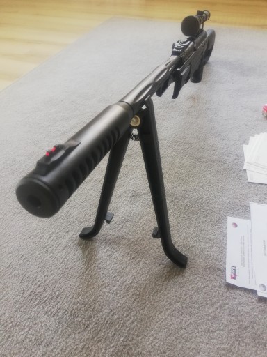 Карабін має вбудований глушник і приклад з отвором для великого пальця