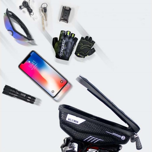 Водонепроникна, з сучасним виглядом і виготовлена з високоякісних матеріалів, велосипедна сумка WildMan ідеально підходить для велосипедних подорожей за будь-яких погодних умов. Виріб кріпиться на кермо велосипеда за допомогою ремінців, які кріпляться на міцну липучку. Сумка має водонепроникне відділення, яке дозволяє зберігати різноманітні велоаксесуари та особисті речі (ремкомплекти, ключі, документи, гроші, павербанки тощо). Верхня частина, що застібається на двокомпонентну блискавку, оснащена прозорим віконцем для кріплення телефону (макс. 6,5 дюймів), завдяки якому ви можете користуватися навігацією під час їзди на велосипеді, слухати музику та розмовляти через гарнітуру.