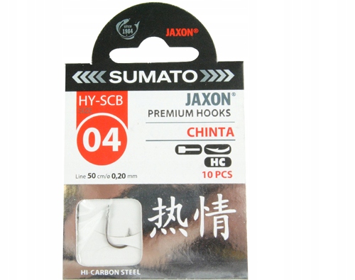 В упаковці 10 гачків JAXON SUMATO з поводками довжиною 50 см, закінченими петлею 2 см. Зручна та зручна упаковка - книжка з конвертами - по 1 комплекту в кожному конверті. Виготовлені зі сталі VHI-CARBON, що підвищує міцність конструкції на 20% порівняно зі звичайною високовуглецевою сталлю. Хімічно заточений.