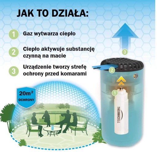 Для комарів в саду! У нас є! Остання частина лінійки Thermacell, Patio Shield, — це компактний і стильний пристрій, доступний у трьох унікальних кольорах, який добре виглядатиме на будь-якому внутрішньому дворику, терасі чи балконі. Пристрій відлякує комарів, випромінюючи d-аллетрин, який створює навколо пристрою захисну парасольку площею 20 м². Пристрій можна вмикати і вимикати в будь-який момент, завдяки чому базового набору на 12 годин вистачає на багатоденний захист від комарів.