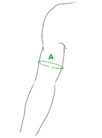 - A. Обхват біцепса - виміряйте в найтовстішій частині біцепса з прямою рукою, не розгинаючи.