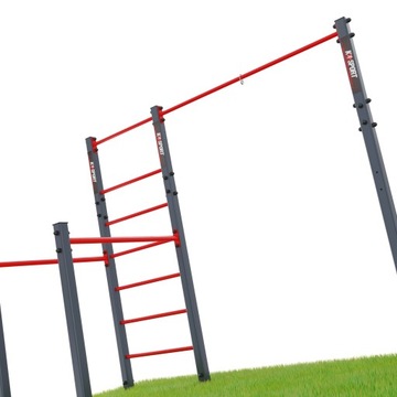 Drążek stacjonarny zewnętrzny z poręczami i drabinką pionową umożliwia wykonywanie szerokiej gamy ćwiczeń. Poręcze przeznaczone do wykonywania pompek szwedzkich idealnie rozbudowują tricepsy oraz barki.