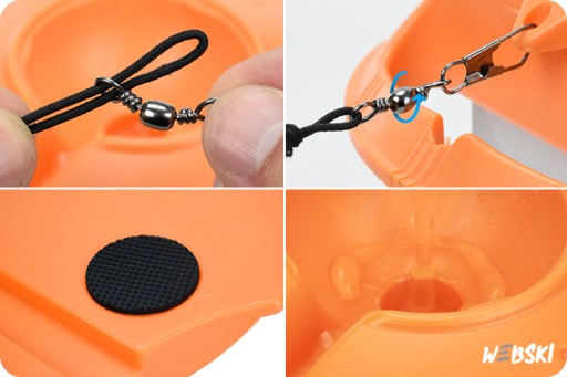 - Поворотна головка карабіна запобігає заплутуванню волосіні під час тренувань.