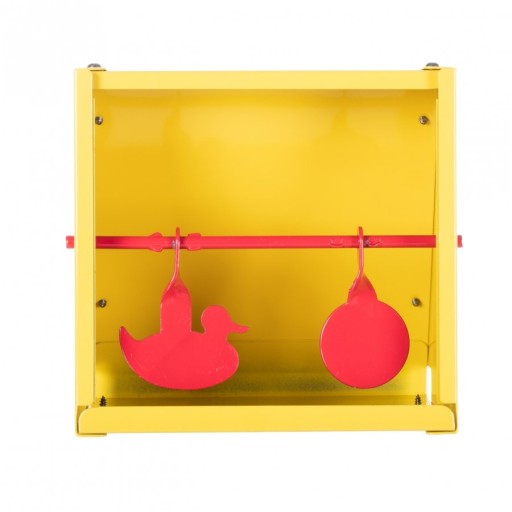 Кулеловка виготовлена з товстого сталевого листа, покритого жовтою порошковою фарбою для захисту від корозії. Задня стінка пулеуловителя має нахил, що запобігає рикошету сталевих ББ і дозволяє ефективно утримувати свинцевий дроб. Після стрільби досить висипати дробини з пулеуловителя, уникаючи стомлюючої чистки і забруднення навколишнього середовища.