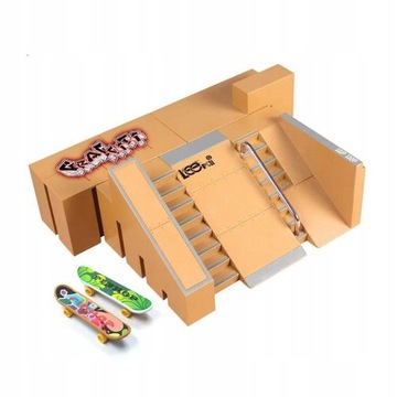 - Zestaw zawiera: Dwie mini deskorolki, zestaw plastikowych łączników, skatepark składający się z 5 modułów oraz rampy