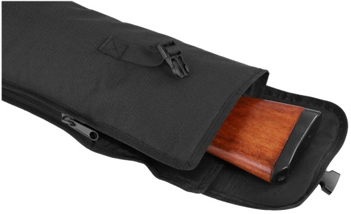 Застібається на блискавку, одна сторона оброблена синтетичною шкірою, яка є міцним зміцненням і захистом цієї чутливої точки від намокання та пошкоджень. Інша сторона закінчується клапаном, який закривається на пряжку, завдяки чому доступ до зброї стає набагато швидшим і легшим.