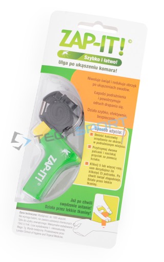 Апарат ZAP-IT - це невеликий кишеньковий розчин, який усуває свербіж і набряк після укусів комарів і мошок, а також після контакту з кропивою або медузами. Надзвичайно корисний для всіх поїздок на відпочинок, а також для людей, які страждають алергією на укуси комах. ZAP-IT безпечний, не містить хімікатів і не викликає алергії. Пристрій працює до 1000 укусів і також може використовуватися через тонкі тканини, наприклад, футболки. Спосіб застосування: Кілька разів клацаючи навколо укусу, ви можете загальмувати вивільнення гістаміну, який викликає свербіж. Токсини нейтралізуються без негативного впливу на шкіру, що призупиняє розвиток запального процесу. Найефективніший спосіб — 5 разів клацнути навколо укусу та 2 рази в самому центрі укусу.