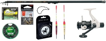 ZESTAW SPŁAWIKOWY - WĘDKA JAXON ZAFFIRA TELE FLOAT 3,3 m + KOŁOWROTEK JAXON PIANO VM 100 + AKCESORIA WIDOCZNE NA ZDJĘCIU