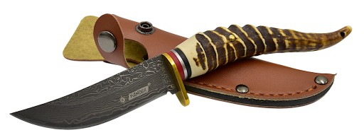 Ніж оснащений лезом з профілем Trailing Point. Леза цього типу найчастіше зустрічаються на ножах для зняття шкіри або філе. Цей профіль має велику вигнуту зону різання, оптимізовану для нарізання або зняття шкіри. Профіль у поєднанні з лезом з високим увігнутим зрізом забезпечує чудові властивості різання та проникнення. На лезо ножа нанесено лазерне гравіювання, що імітує дамаську сталь.