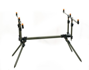 Uniwersalny rod pod dla każdego, kto szuka stabilnego statywu, z możliwością ułożenia do 3 wędek jednocześnie! Kąt ustawienia wędek można regulować na kilka sposobów, między innymi za pośrednictwem regulacji buzz barów, długości nóżek, oraz ich rozstawu, co pozwala dostosować się do każdych warunków panujących na łowisku. Możliwe używanie samych buzzbarów każdy z nich wyposażony w osobne dwie podpórki wtedy wysokość wynosi: 30 do 46 cm.